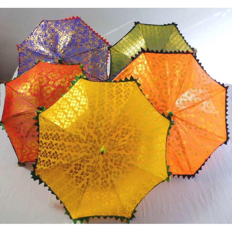 Ombrelles indiennes en tissu coloré.